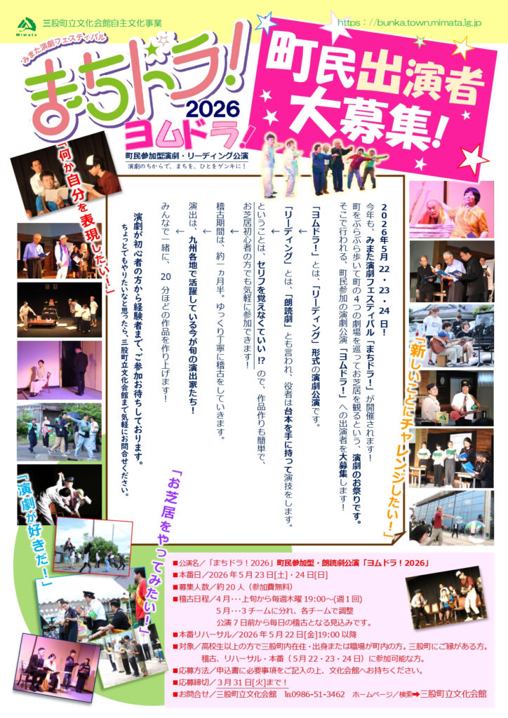 その、町民参加型演劇・リーディング公演「ヨムドラ!」の、町民出演者を募集します‼