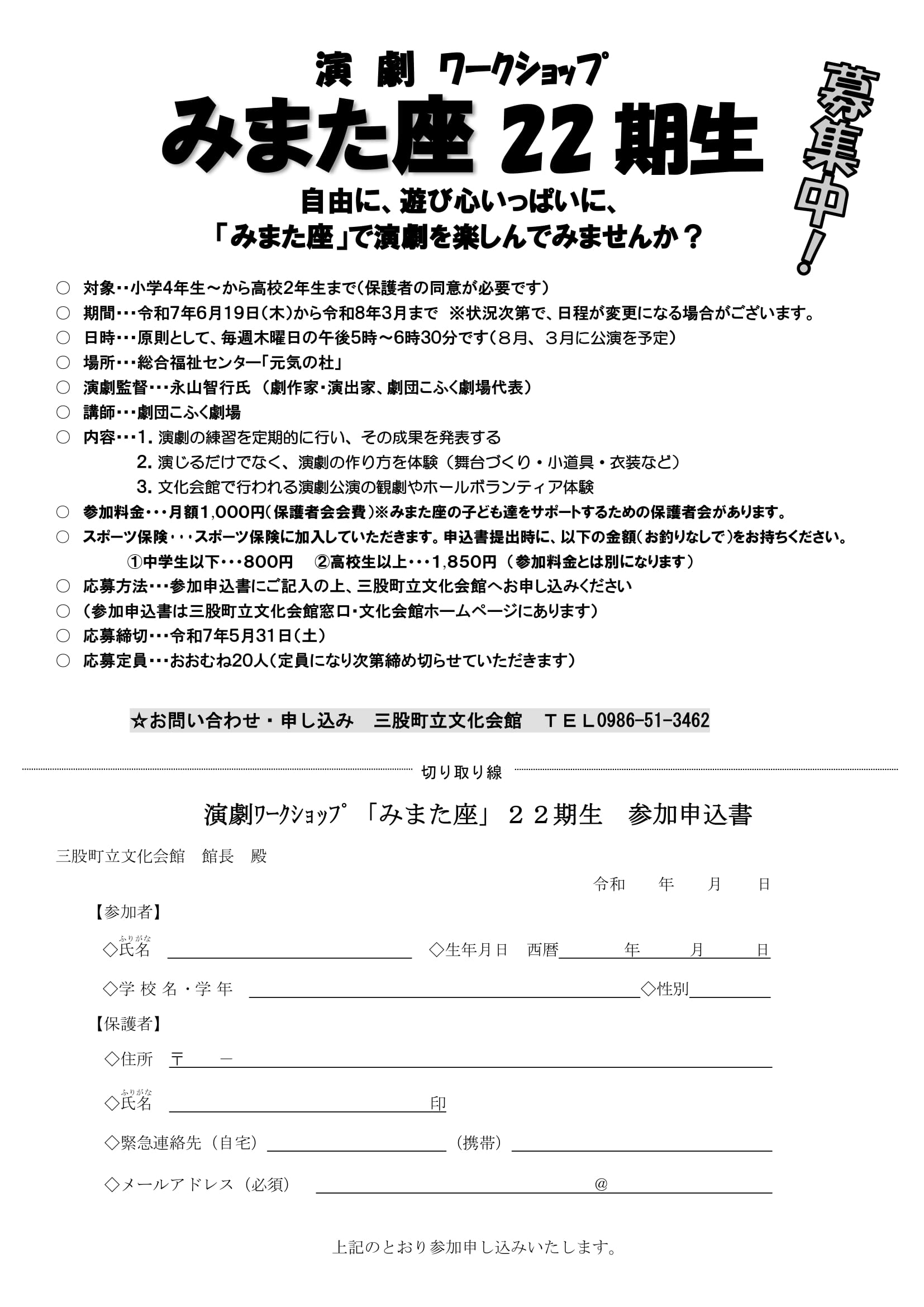 みまた座22期生 参加申し込み書 👈クリック
